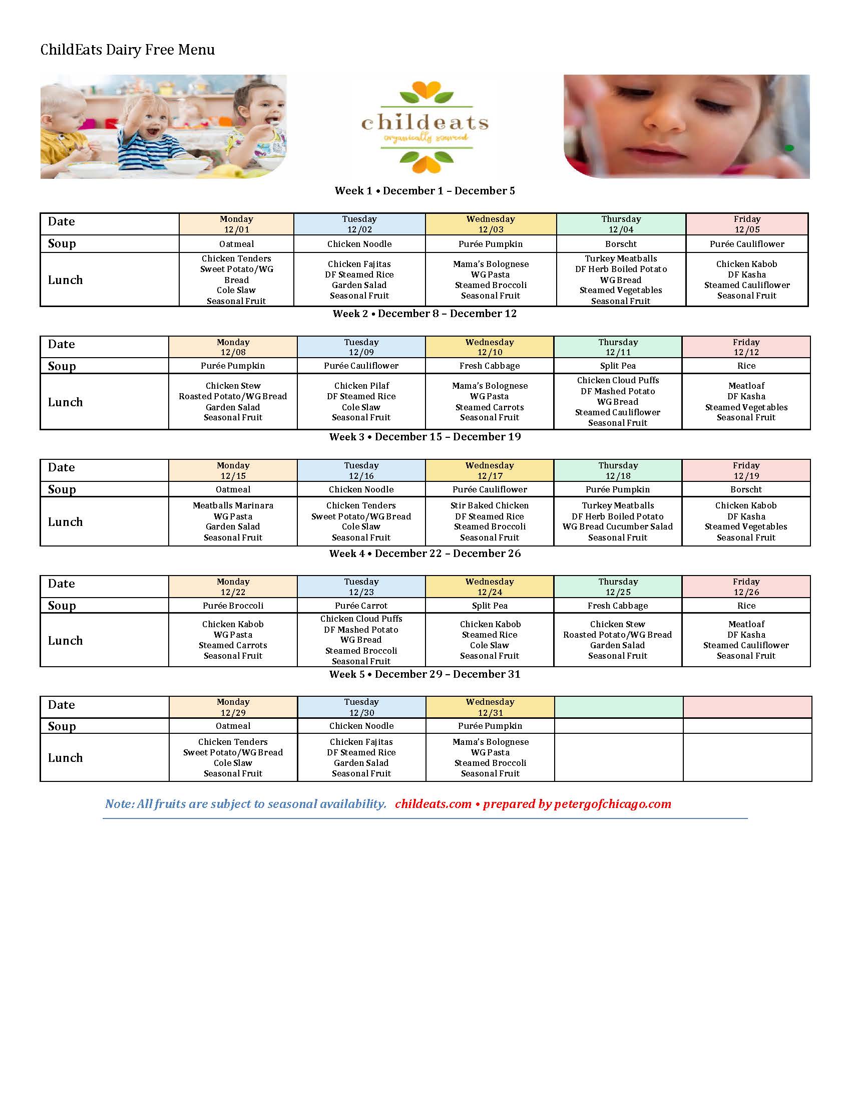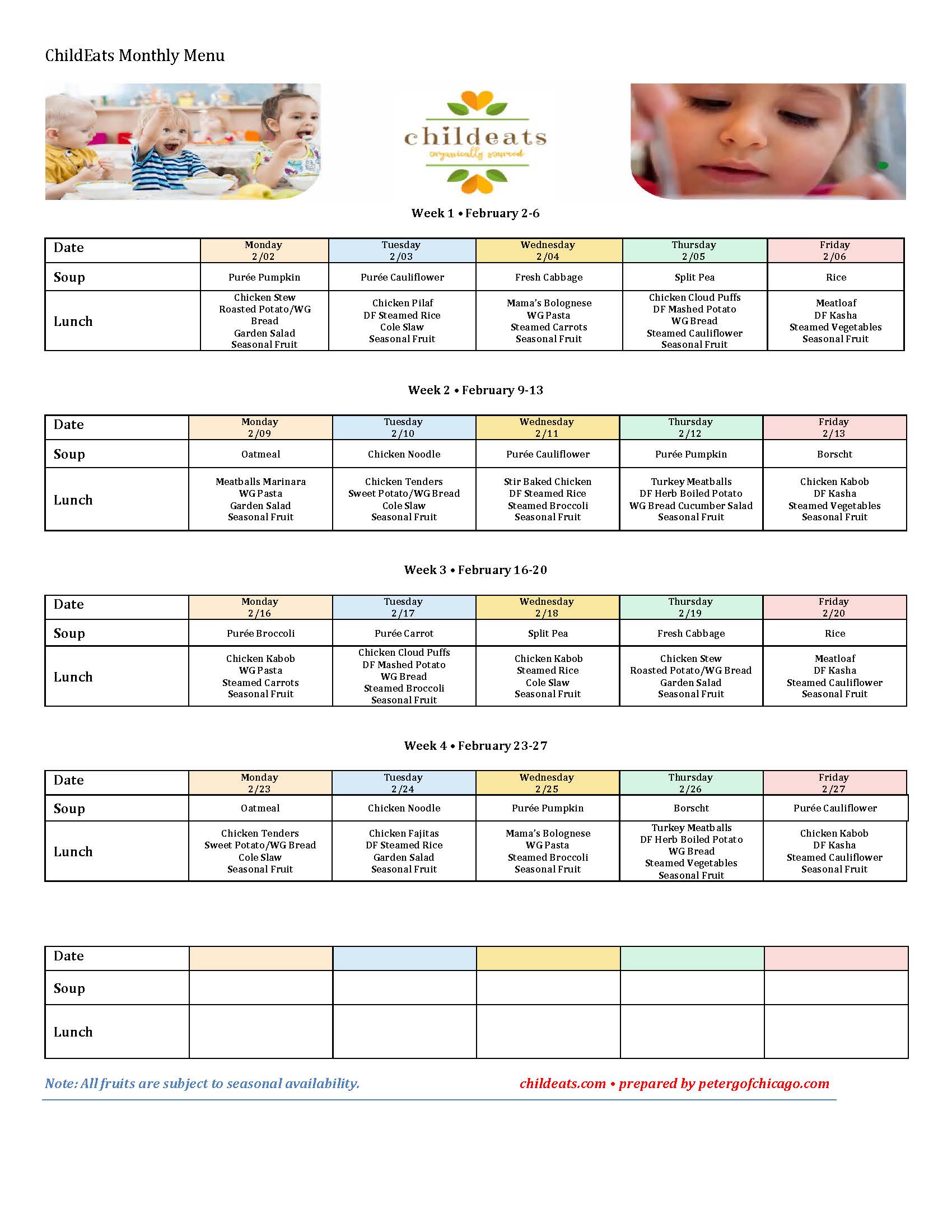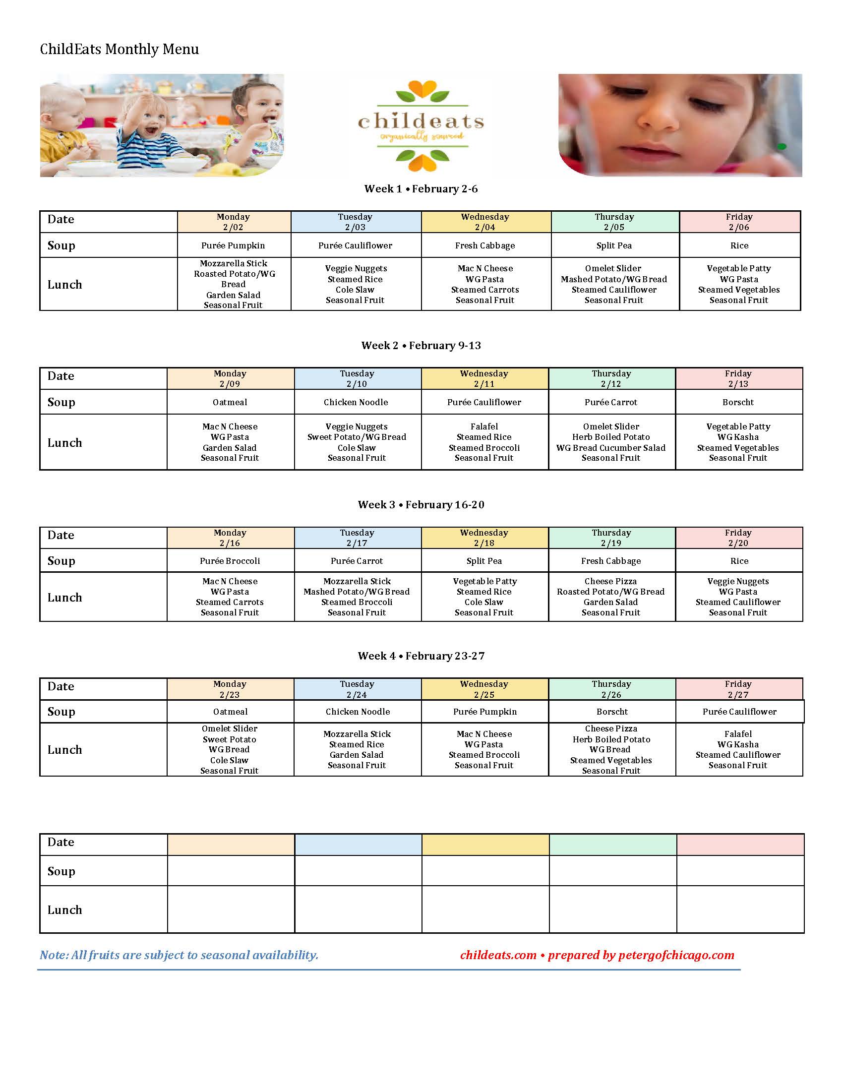 Your daycare food meals are carefully crafted with little brains in mind for every growth stage. Flexible meal plans are customized to your daycare needs and updated with fresh items on a monthly basis.