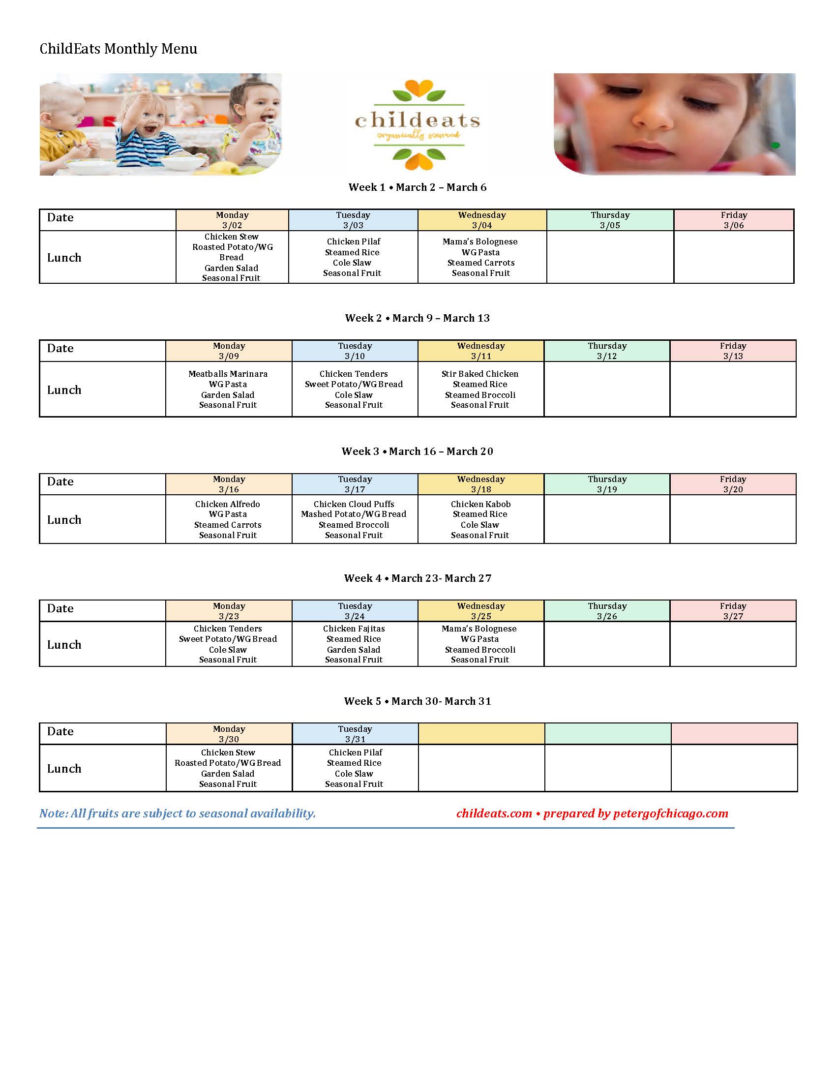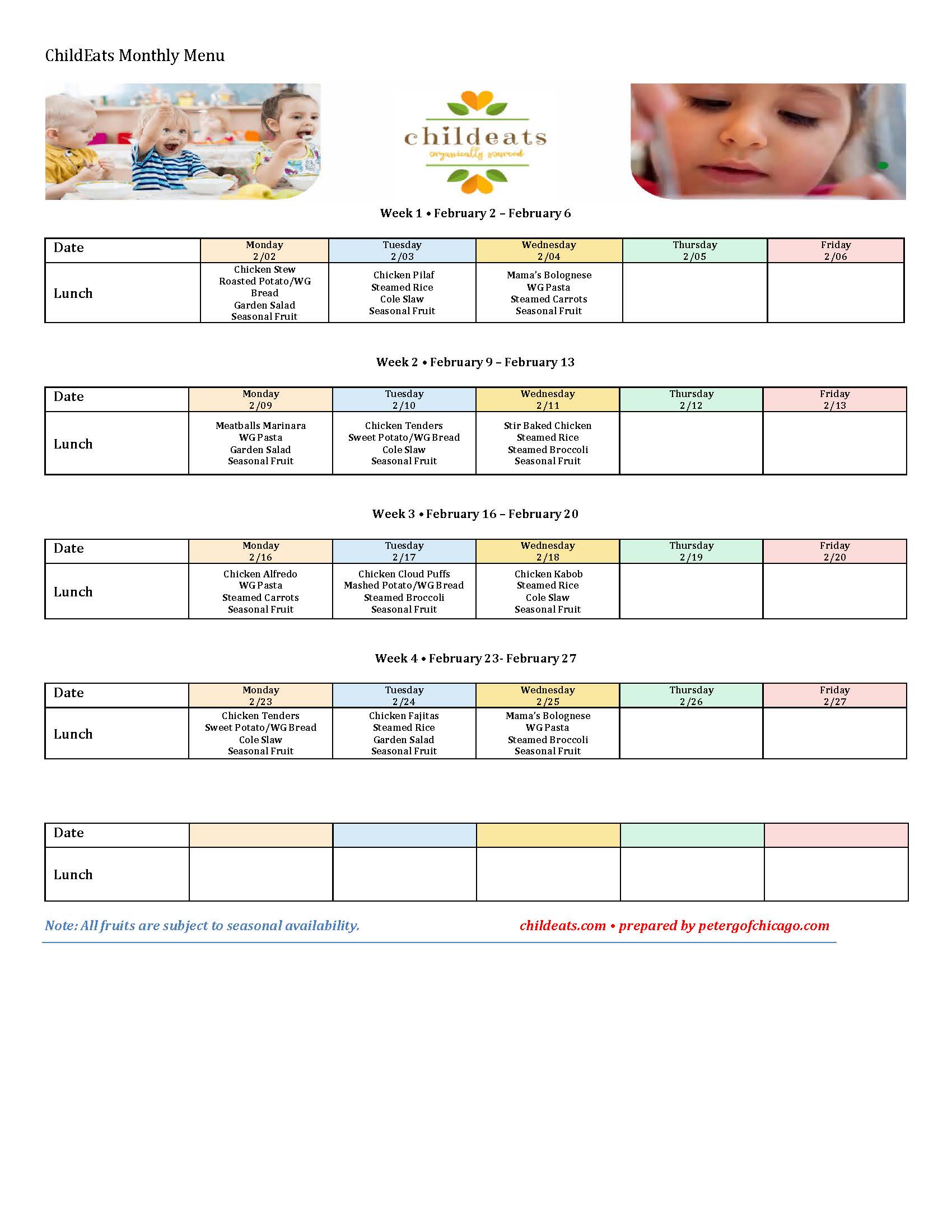 Your daycare food meals are carefully crafted with little brains in mind for every growth stage. Flexible meal plans are customized to your daycare needs and updated with fresh items on a monthly basis.